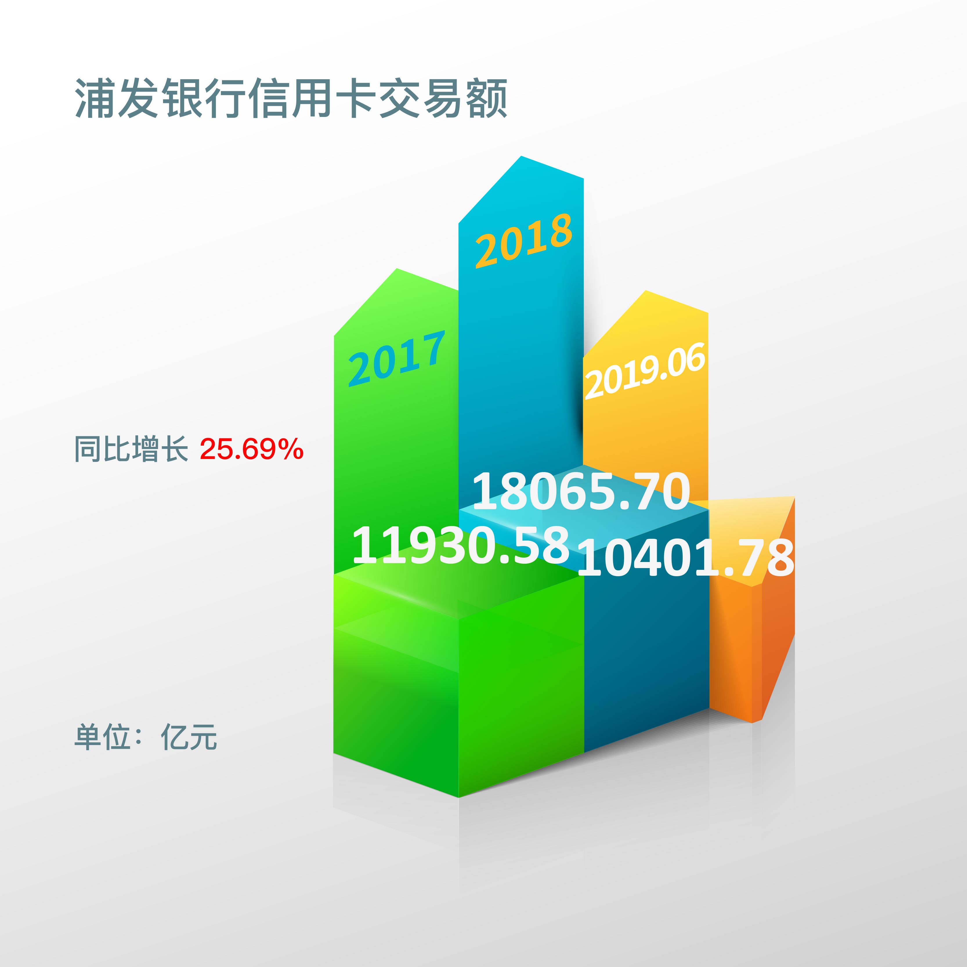报告期内,浦发银行信用卡交易额10,401.78亿元,同比增长 25.69%;据往年年报显示,2018年