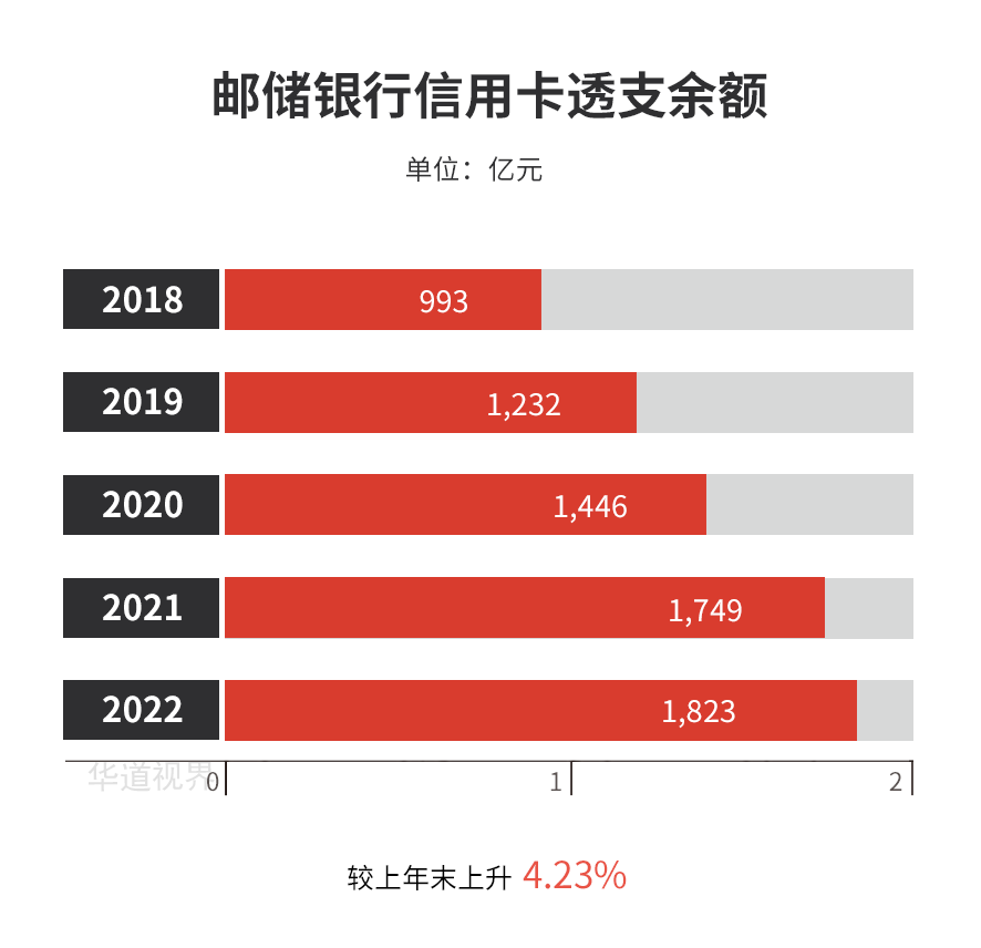截至报告期末,邮储银行信用卡透支余额1,822.66亿元;