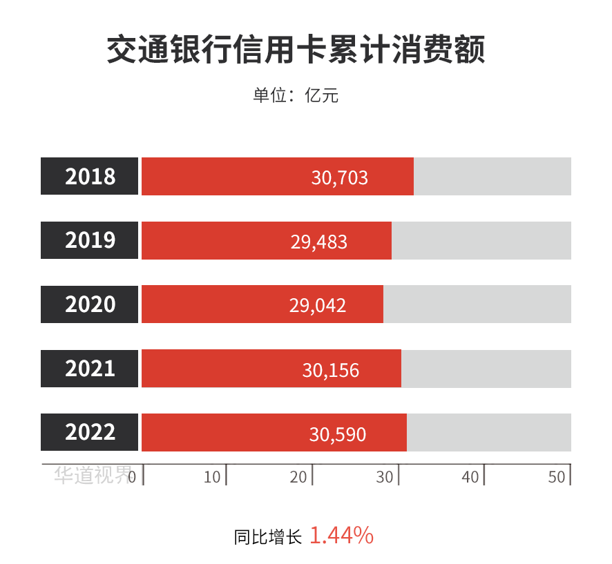 报告期内,交通银行信用卡累计消费额为30,589.93亿元,同比增长1.44%;