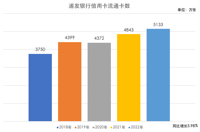 截至报告期末,浦发银行信用卡流通卡数 5,133.16 万张,同比增长 5.98%;