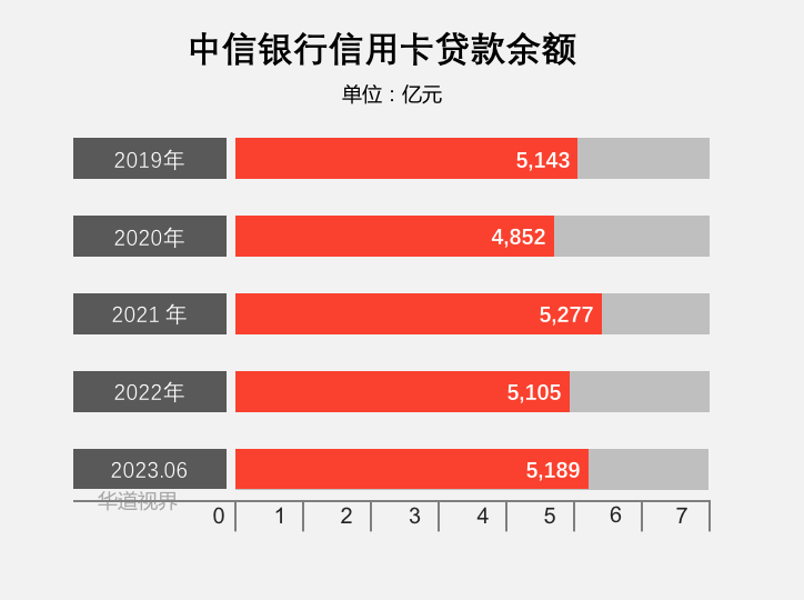 截至2023年6月末,中信银行信用卡贷款余额 5,189.13 亿元;