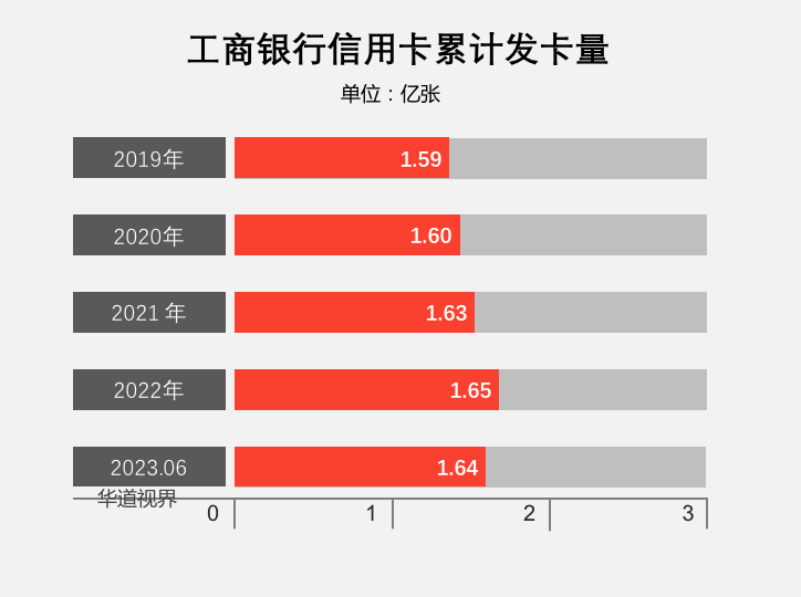 截至2023年6月末,工商银行信用卡发卡量 1.64 亿张;