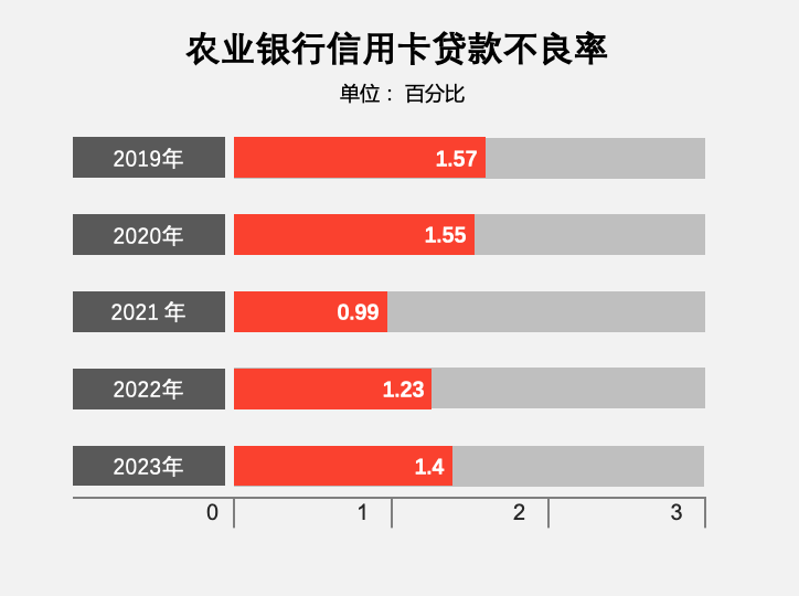 截至2023年末,农业银行信用卡不良率1.4%。