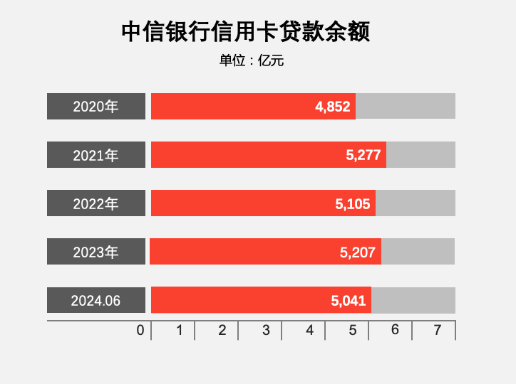 截至2024年6月末,中信银行信用卡贷款余额 5,040.91 亿元;
