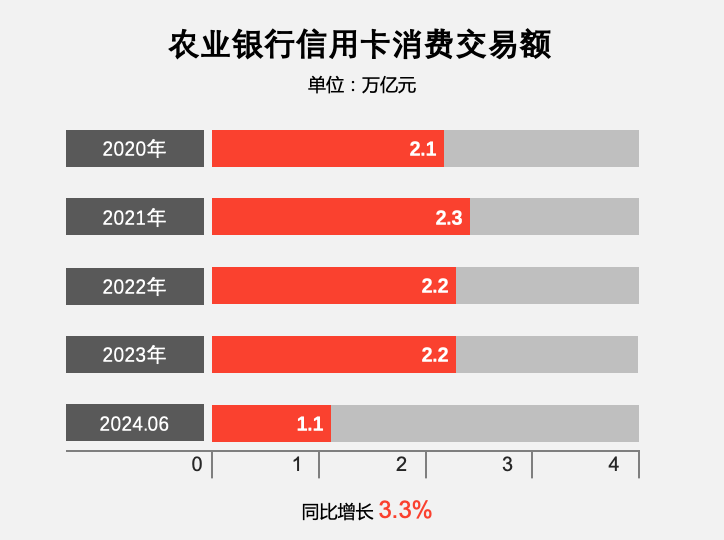 报告期内,农业银行信用卡实现消费额11,130 亿元,同比增长 3.3%;