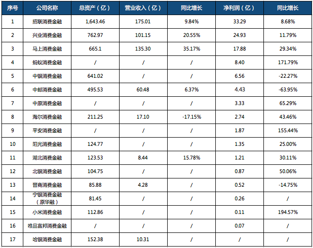 今年银保监会非银部发布的《引领消费金融公司规范有序发展》文中提到,截至2022年末,全国已开业30家消费金融公司行业资产总额为8844.41亿元,从已经披露的17家消金机构来看,前三名的总资产超3000亿规模,已超过行业总资产的3成多,净利总额占到已披露的7成。