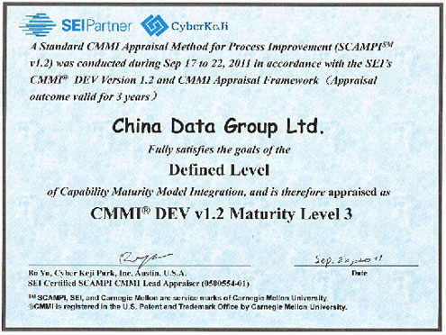 9月,betway必威数据公司正式通过CMMI ML3级复评认证。相关资质可以通过http://sas.sei.cmu.edu/pars/pars.aspx网站查询。