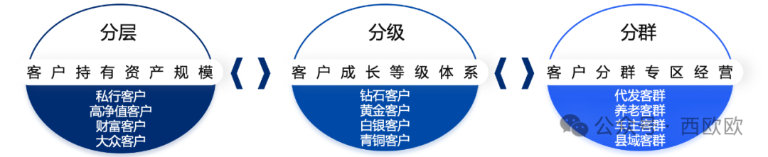 在银行的客户经营逻辑中,比较有代表性的就是所谓的“三分体系”(下图),也就是分层、分级和分群。
