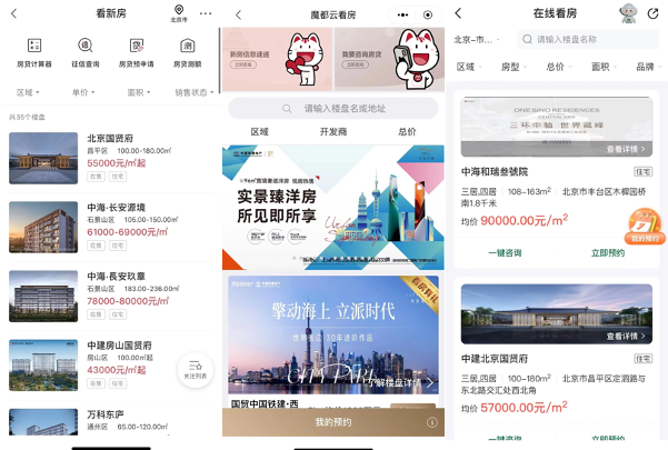 “看新房”的覆盖范围更大,包括北上广深四个一线城市、省会城市,以及宁波、苏锡常、佛山等较发达城市的部分在售地产项目。在三四线城市,只收纳了招商地产的项目。