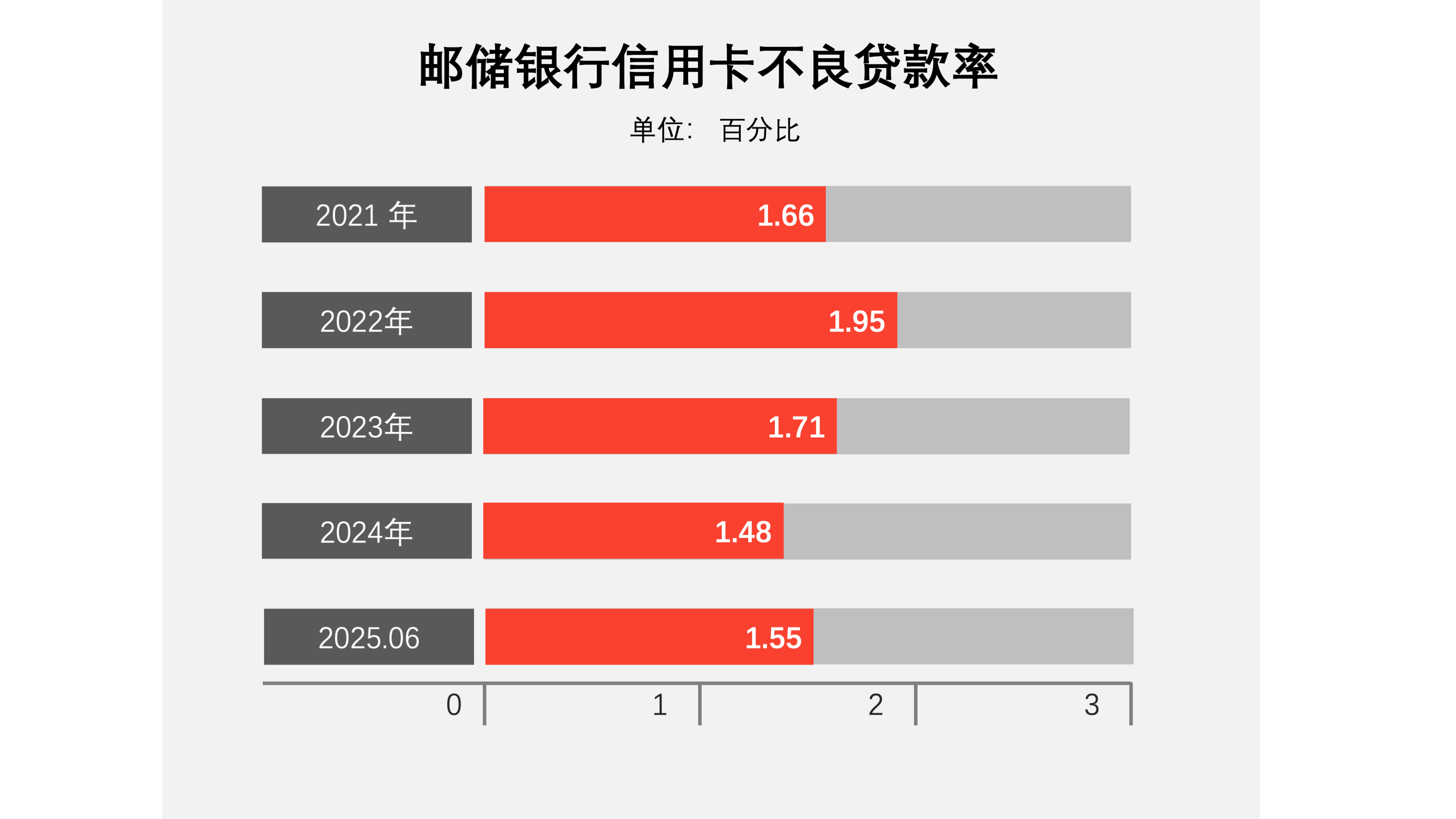 截至报告期末,信用卡透支及其他不良贷款率1.55%。