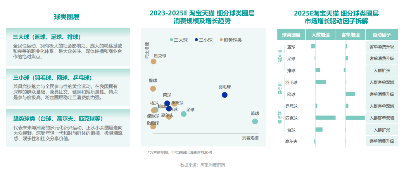 与此同时,作为每年商家理清当前经营模式和目标、提前布局未来高增货品的“风向标”,平台发布了《2025 淘宝天猫球类运动趋势白皮书》(下文简称 “白皮书”),通过精准化、实用性的趋势生意参考,进一步释放和扩大球类消费相关商家的自主成长空间。