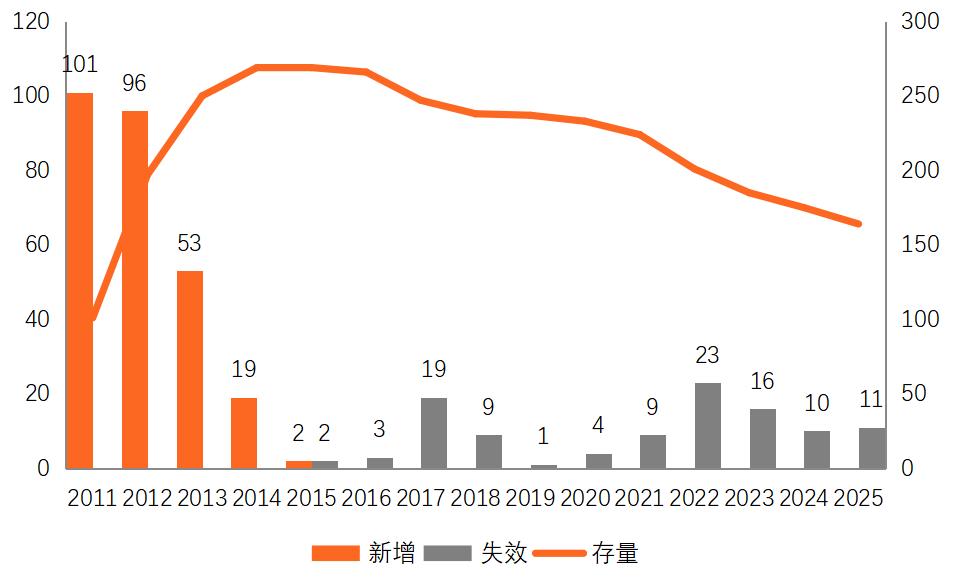图1:2015-2025年支付牌照数量(截至2025年10月底)