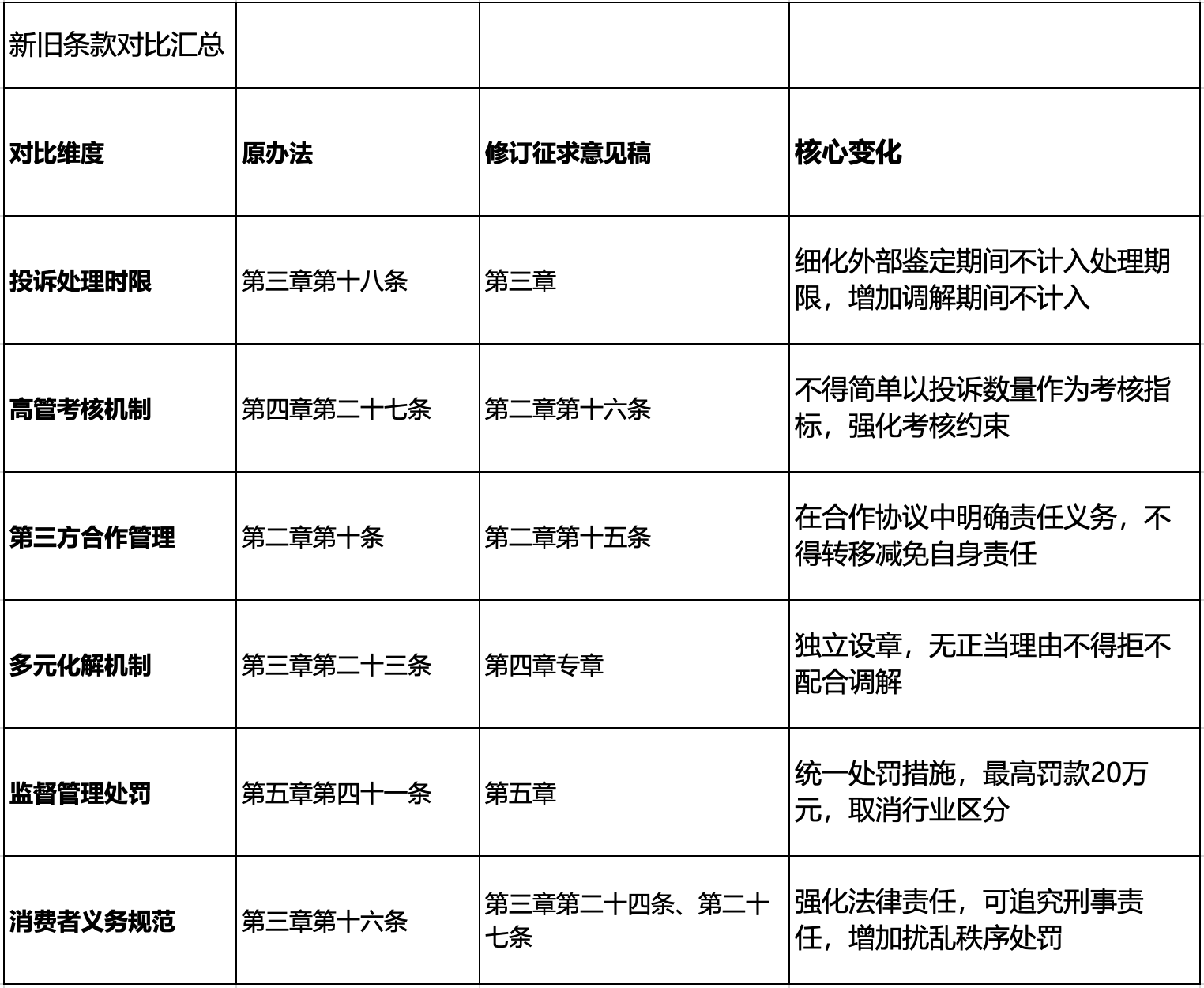 新增内容:银行保险机构应当开展消费投诉风险排查,对金融消费者咨询、意见、建议等反映的苗头性问题,及时采取措施,防止升级为消费投诉。