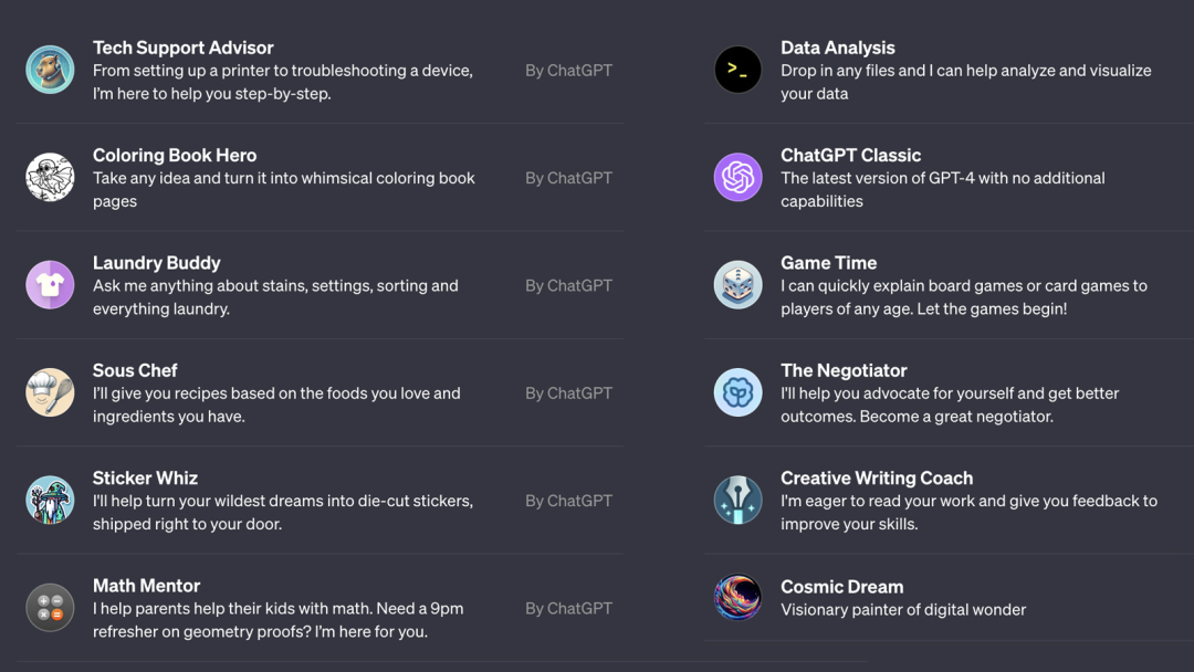 1月5日凌晨,OpenAI向所有自定义GPT开发者发布了一封邮件,下周将上线“自定义GPT商店”。自定义GPTs是OpenAI在去年首届开发者大会上发布的重磅产品,用户无需任何代码,全程支持可视化点击操作。用户只需要提交对话指令、额外的知识数据,然后选择是否需要网络搜索、数据分析和图片生成等多模态功能,就能快速开发法律、金融、医疗等特定领域的ChatGPT助手。而这个自定义GPT商店,就是让你开发的自定义ChatGPT助手进行分享,当有其他人使用你的产品时进行付费赚钱。相当于大模型领域的苹果“App Store”。其实这个自定义GPT商店,OpenAI打算在去年12月上线的,但是11月闹出了“罢免CEO事件”影响了整体开发进度。好在终于发布了,算是2024年第一个重磅功能,实实在在的为开发者谋福利。首先你需要开发一个自定义GPT助手,才能激活商店功能,下面是作者之前写的一个教程。1)登录https://chat.openai.com/auth/login注册一个Plus账号。2)注册完毕后登录账号,然后点击左上方的“Explore”按钮,进入自定义构建模式。3)接着会弹出一个页面,点击“Creat a GPT”就开始进行构建了。4)点击“Create”。然后在下方的对话框输入你想构建什么样的自定义GPT,例如,我们构建一个用于回复、阅读电子邮件的GPT助手。如果你希望自定义的GPT回复或执行一些更复杂的特定操作,可以点击那个附件按钮,上传额外数据。5)接着GPT Builder会让你为自定义助手起一个名字,例如,我们起一个VB邮箱助手,同时会通过DALL-E 3帮你生成一个助手头像,如果不喜欢可以自行修改,这一点非常人性化。然后点击“Configure”页面进行详细功能配置,是否需要添加 Web Browsing(联网功能)、Dall E(图片生成功能)和Code Interpreter(代码解析器功能),这里我们全部选择即可,就可以让你的助手实现多模态输出。关键部分来了,系统还会问你,是否将自定义的ChatGPT助手作为私有模型保存,可以只与自己的同事、公司内部分享。或者直接开放与全世界的人共享,这个就可以放到OpenAI即将发布的自定义GPT商店中进行赚钱。所以,如果你想放到自定义GPT商店中赚钱就选择分享模式,如果不希望别人使用或者看到就选择私有部署。自定义GPT商店有排行榜功能,使用的人越多,你的产品排名就越高。