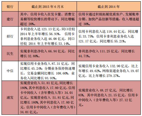 盈利:5家银行公布信用卡收入相关情况。